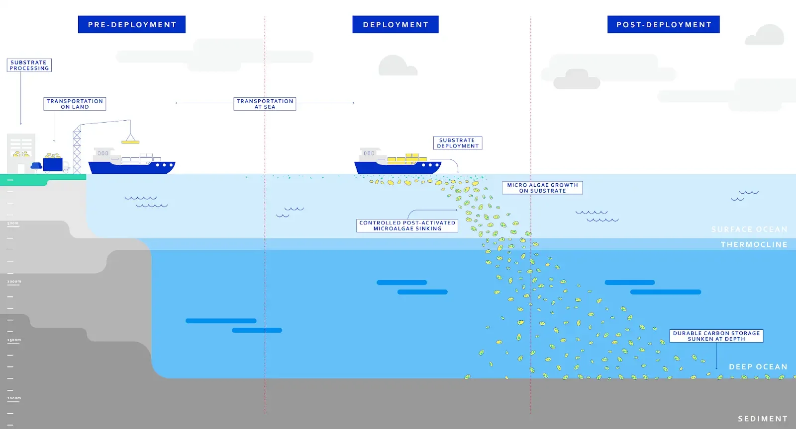 At its core, the MCFS approach leverages the ocean’s ability to uptake more CO₂ from the atmosphere by fixing excess CO₂ into microalgae. This is followed by an efficient and controlled sinking mechanism, locking the carbon in the very deep ocean.